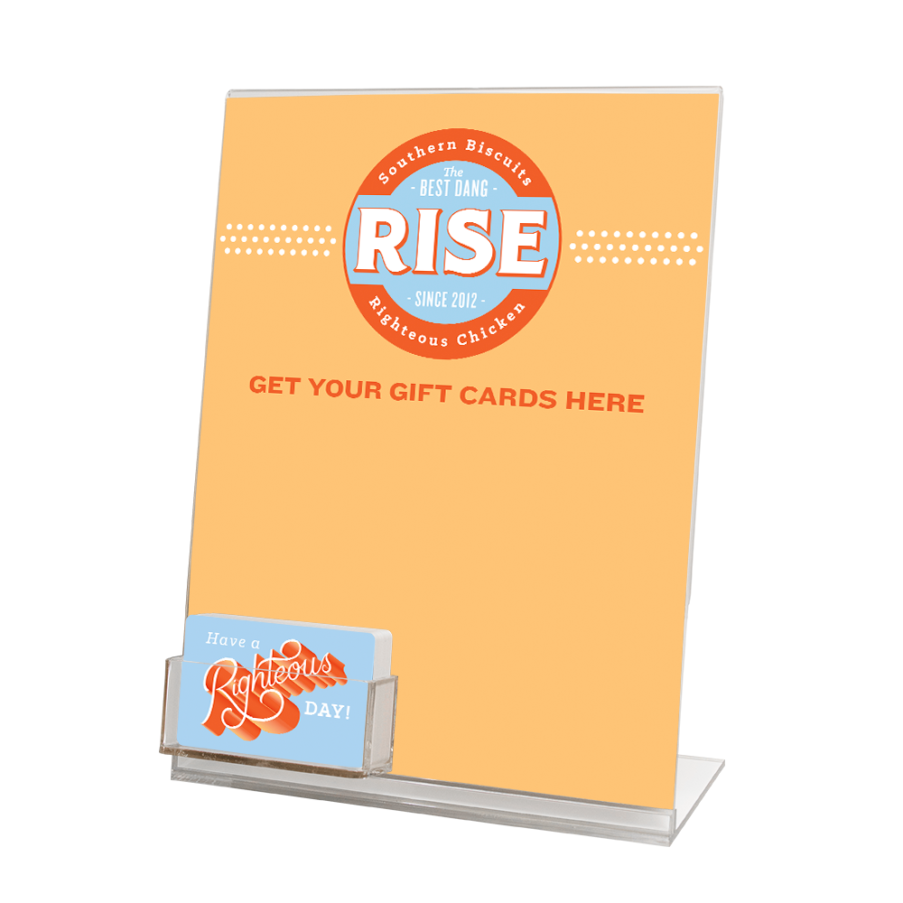 Our highly durable acrylic card display stand keeps your cards in front of your customers for point of sale conversions. Easily increase gift card sales, or participation in your membership or VIP program by keeping your cards accessible at the point of payment.